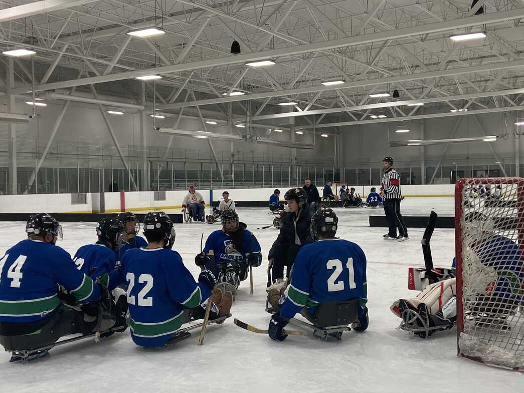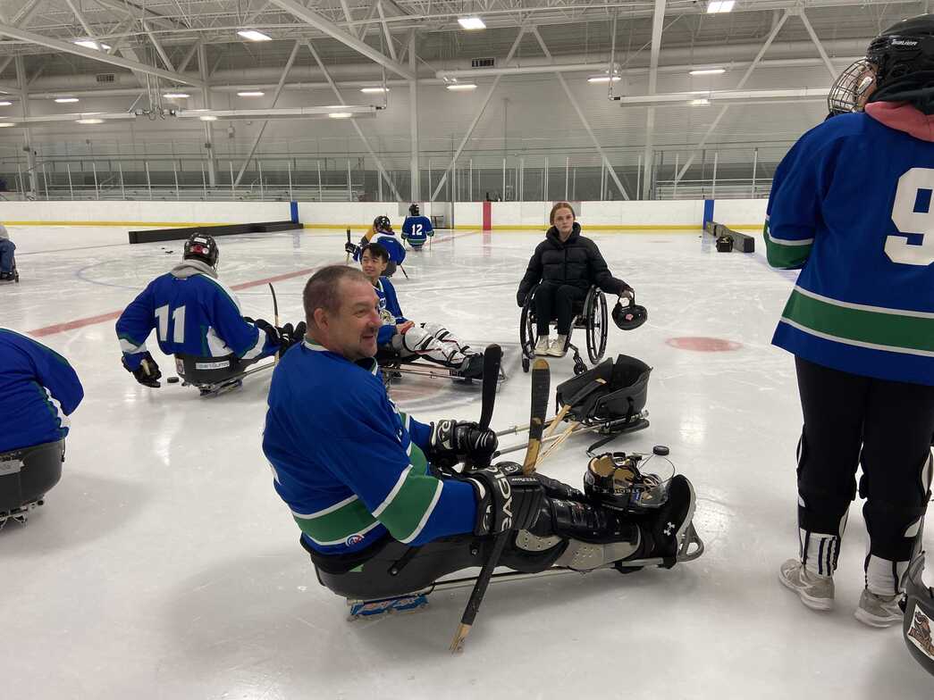 Photos: Neuromotion team (staff, clients, family and friends) taking part in Sportability's Sledgehockey showdown 2022 (Credit: Neuromotion)